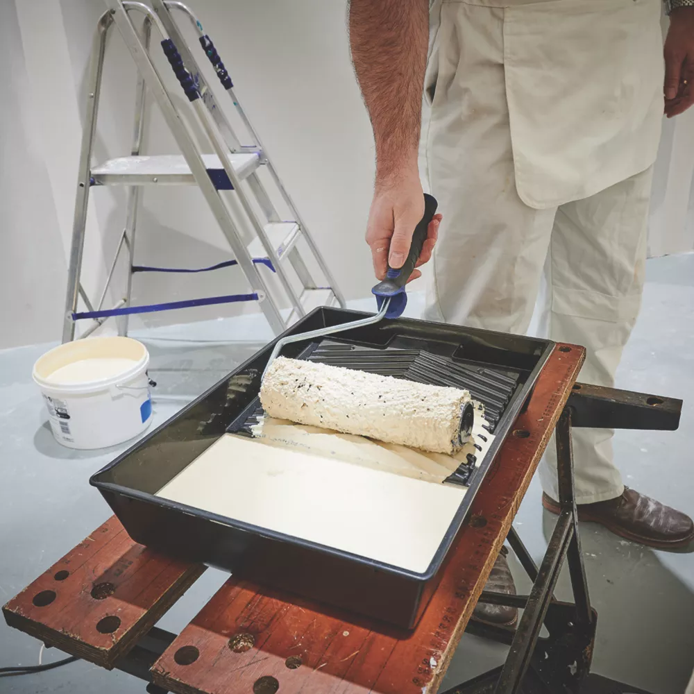 Kit includes 9″ roller frame with soft-grip handle and 5 medium pile micropoly sleeves for excellent even coverage on smooth to semi-smooth surfaces. Supplied with deep ridge tray with wells for brush storage.