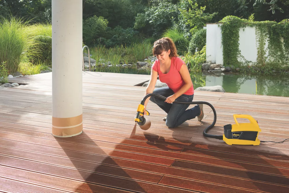 Time-saving electric paint sprayer supplied with 2 spray attachments for wood / metal and paints. Features I-Spray nozzle with X-Boost turbine for rapid paint application with extra-fine atomisation. Offers fully-adjustable spray jet width to match whatever is being painted. Covers approx.15m² in 6 minutes. Offers professional finish with no brush or roller marks. Easy to clean.