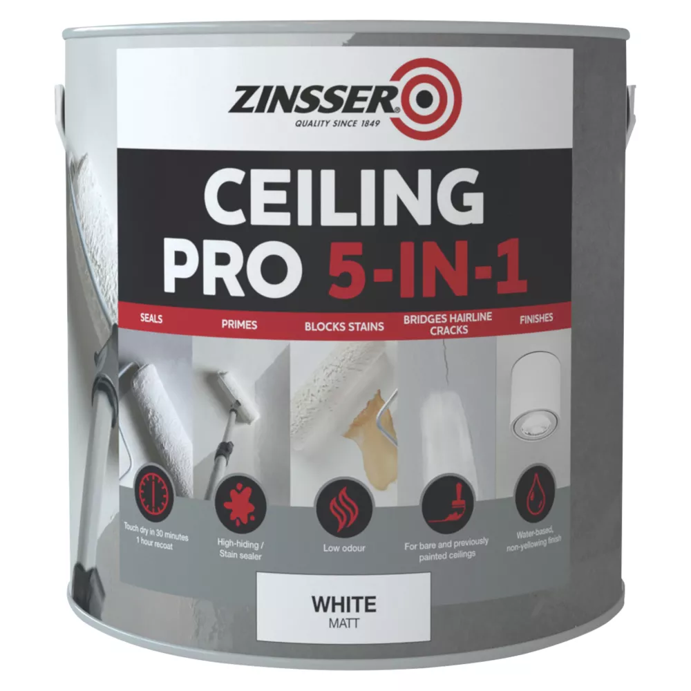 Effortlessly provides a perfectly finished, non-yellowing ceiling. Adheres to any surface, seals stains (including water and smoke stains), primes and finishes whilst bridging hairline cracks. Contains a biocide that protects the dried coating against fungal degradation, prolonging life. Low odour and ultra low VOC content. Suitable for bare and previously painted ceilings. Dries in 30 minutes, recoat in 1 hour.
